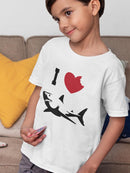 Cute design for kids with an awesome black shark design. Toddler's White T-shirt