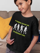 A funny design for kids "If zombies chase us, I`m tripping you". Toddler's Black T-shirt
